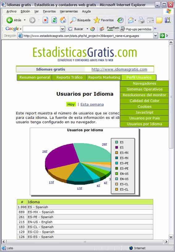 Todos esos datos puedes consultarlos desde http://www.estadisticasgratis.com/, o recibirlos en tu dirección de correo.